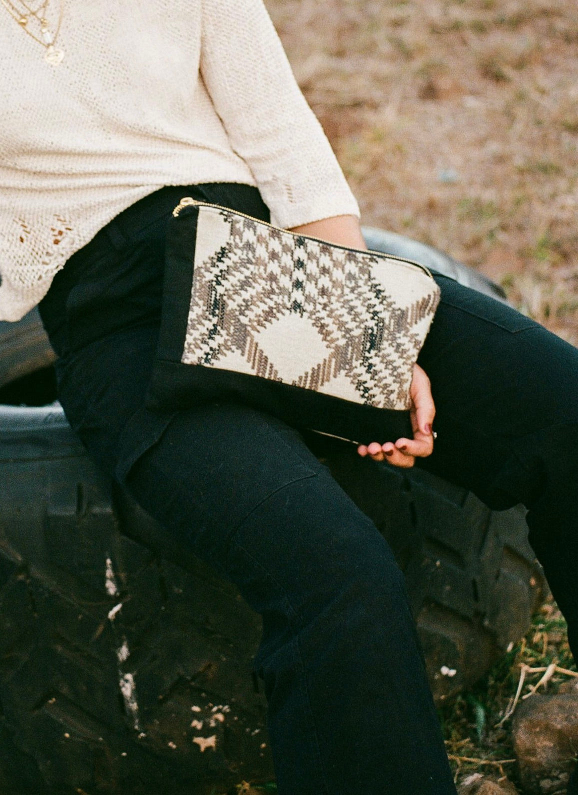 - Sturdy brass zipper closure